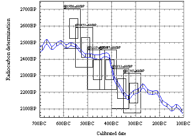 Where the information concerning the age of a sample is limited to a single radiocarbon date a simple calibration is all that is required. However if there is more information available it seems most sensible to incorporate this into the probability distributions calculated. This is particularly important given that the calibration process itself can often lead to chronological error margins which make answering the archaeological or environmental questions posed difficult (see for example Manning and Weninger 1992).